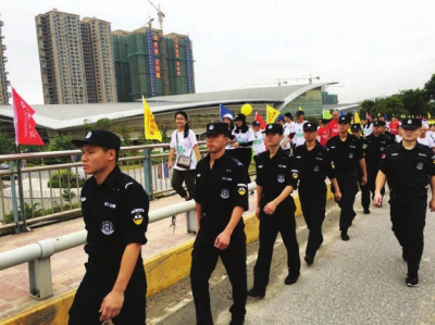 上午8时30分,城区中队的交警陈志伟和一众同事便早早地到达指定位置站岗,守候在美林桥头位置,一有参赛者经过他便和志愿者一起维持秩序、指导路线。“所有值班的交警全部出动了,我们主要是保障参赛者的安全。”陈志伟说,虽然一大早就开始值班,但是一点都不觉得辛苦,因为这是一个有意义的活动。