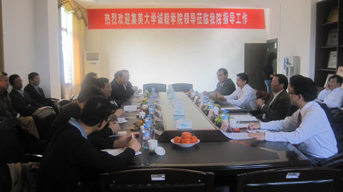 听取汇报后,诚毅学院领导对开元(中国)在短短几年的时间里取得了如此大的成绩表示了充分的肯定和赞赏,同时,双方就学院构架、学院发展规模、学风建设、学位授予、教学评估、师资力量等方面进行交流和探讨。