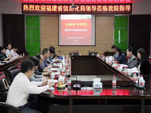 11月15日上午,福建省信息化局教育中心主任张平、科长黄丽星、徐薇及工程师郑伟等一行4人莅临我院检查指导工作,在图书馆评建办就我院申办省级软件人才重点培训基地进行审核评估。学院院长邱永渠、党委常务副书记林明旭、副院长周勇军、教务部主任张永祥、物联网工程系主任潘新民、副主任王燕芳出席评审会。会议由副院长周勇军主持。