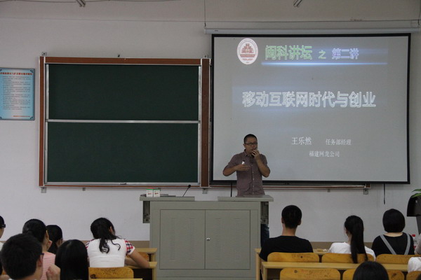 10月9日下午,“闽科讲坛”邀请福建网龙公司相关负责人王乐然,作了主题为 “移动互联网时代与创业”讲座。
