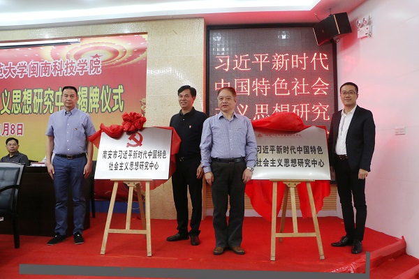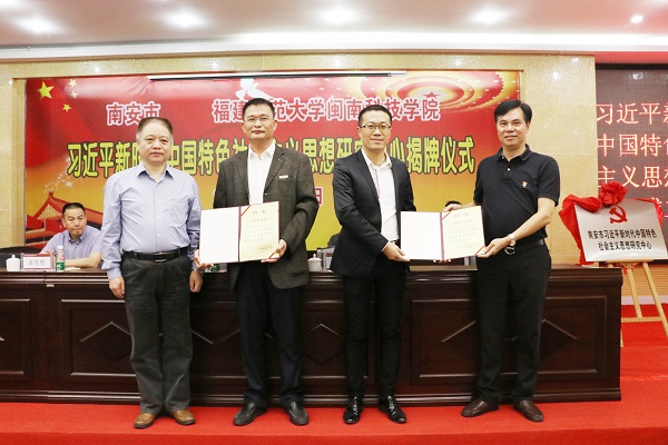 李方祥、吴忠溪、卓庆哲、林明旭分别为“南安市习近平新时代中国特色社会主义思想研究中心”和同时成立的“福建师范大学开元(中国)习近平新时代中国特色社会主义思想研究中心”揭牌。