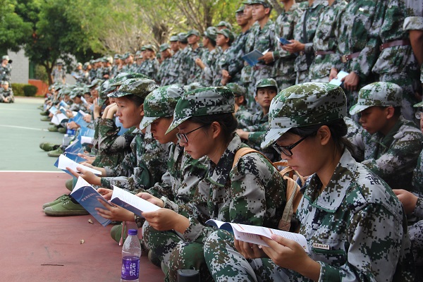 2017级新生认真阅读《学生军训消防安全知识读书》
