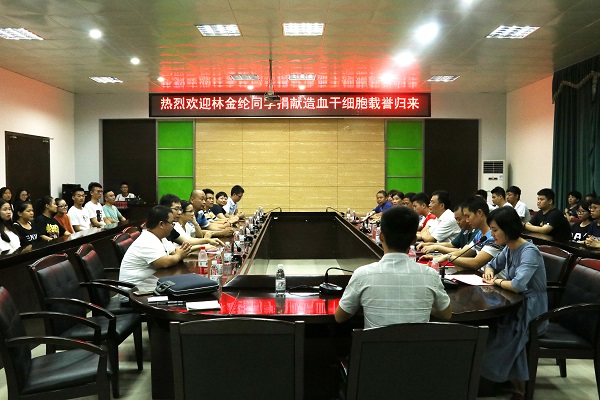 9月7日,我院召开“热烈欢迎林金纶同学捐献造血干细胞载誉归来”座谈会,泉州市红十字会常务副会长黄剑明、南安市红十字会专职副会长洪冬青,学院党委副书记俞建群,经济管理系部分师生代表出席座谈会。