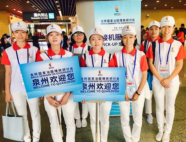 8月17日-18日,金砖国家治国理政研讨会在泉州市举行,迎来了中国、俄罗斯、印度、巴西、南非以及坦桑尼亚、埃塞俄比亚、墨西哥等其他发展中国家的代表。我院大学生青年志愿者共50人参与金砖国家治国理政研讨会服务保障工作,他们以热情周到的服务和过硬的职业素养得到了主办方和外宾的一致好评,展示了我院大学生良好的精神风貌。