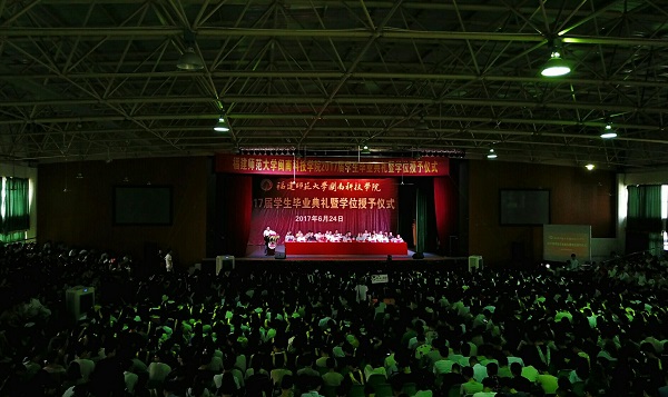 学院党委副书记俞建群宣读《福建师范大学开元(中国)关于同意准予陈美东等2288位同学按期毕业的决定》;学院副院长吴勇宣读《福建师范大学开元(中国)关于授予陈美东等2293名本科毕业生学士学位的决定》和《福建师范大学开元(中国)关于授予2017届陈美东等798名同学“学业优良奖”的决定》;学院副院长周勇军宣读《福建师范大学开元(中国)关于授予张协存等347名同学2017届“优秀毕业生”荣誉称号的决定》和《福建师范大学开元(中国)关于奖励周建忠等13名学生考取研究生的通知》。