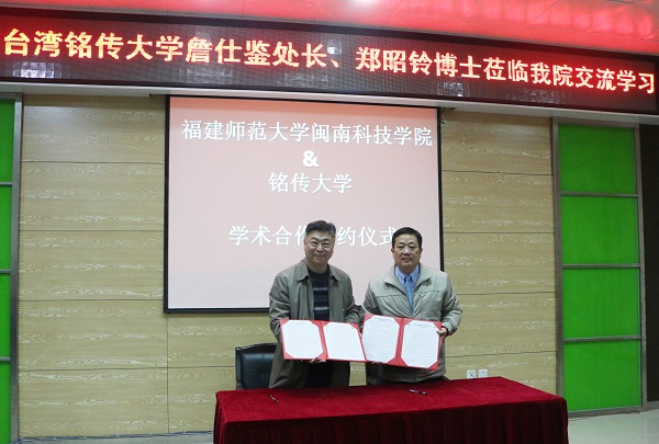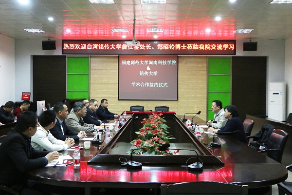 1月22日下午,台湾铭传大学陆教处处长詹仕鉴、组长郑昭铃一行来我院访问交流,院领导张杰、林明旭、周勇军、俞建群热情接待了来宾,双方就开展校际交流合作达成共识,并签订合作协议。