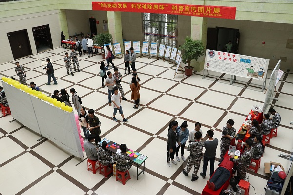活动还设置“创新驱动发展 科学破除愚昧”科普图片展、安全知识有奖竞猜、消防器材展示、消防创意海报作品选、安全急救心肺复苏体验等环节。现场共发放含防毒品、防传销、防邪教、防火知识等宣传材料1000余册,吸引300余名师生参与学习。