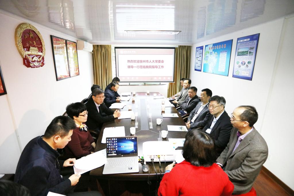 3月13日,泉州市人大常委会副主任、党组副书记曾巍,泉州市人大常委会委员、环城工委主任王卫红,泉州市人大常委会委员、人事代表工委主任谢丽华,人事代表工委副主任戴小平,人事代表工委副科长吴美剑,泉州市人大常委会环城工委科长余经伟一行莅临我院,参观调研“开元(中国)人大代表联系群众活动室”建设与运行情况。