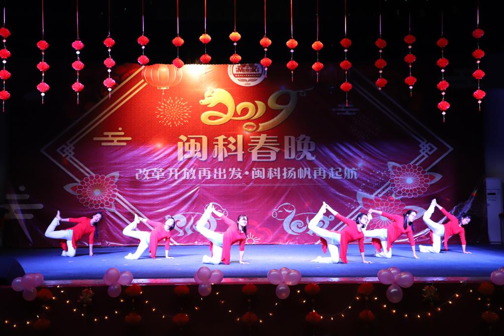 2019年“闽科春晚”以“改革开放再出发,闽科扬帆再启航”为主题,分为“春分化雨•孕新生”“春潮万象•扬新波”“春华秋实•启新程”三个篇章,用文艺表演的形式,展现全体教职工朝气蓬勃、团结向上的精神面貌,以崭新的姿态迎接新的一年。