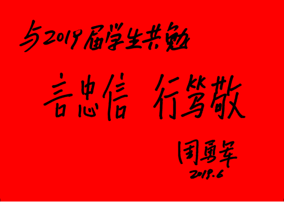 副院长吴勇为2019届毕业生寄语题词