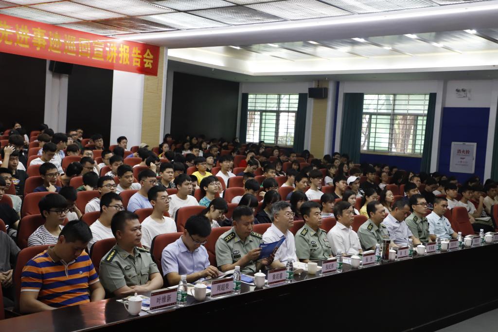 5月23日上午,泉州军分区举办的泉州市2019年优秀大学生士兵典型代表先进事迹巡回宣讲会在我院举行。泉州军分区司令员高宏,泉州市教育局副局长毛伟雄,泉州市征兵办公室副主任、军分区动员处处长欧阳中华,南安市市委常委武装部政委张纪伟,泉州市教育局、南安市教育局、南安市双拥办、康美镇政府等相关领导,学院党委副书记、副院长(主持工作)张杰教授、副院长周勇军等师生代表350余人参加宣讲会。