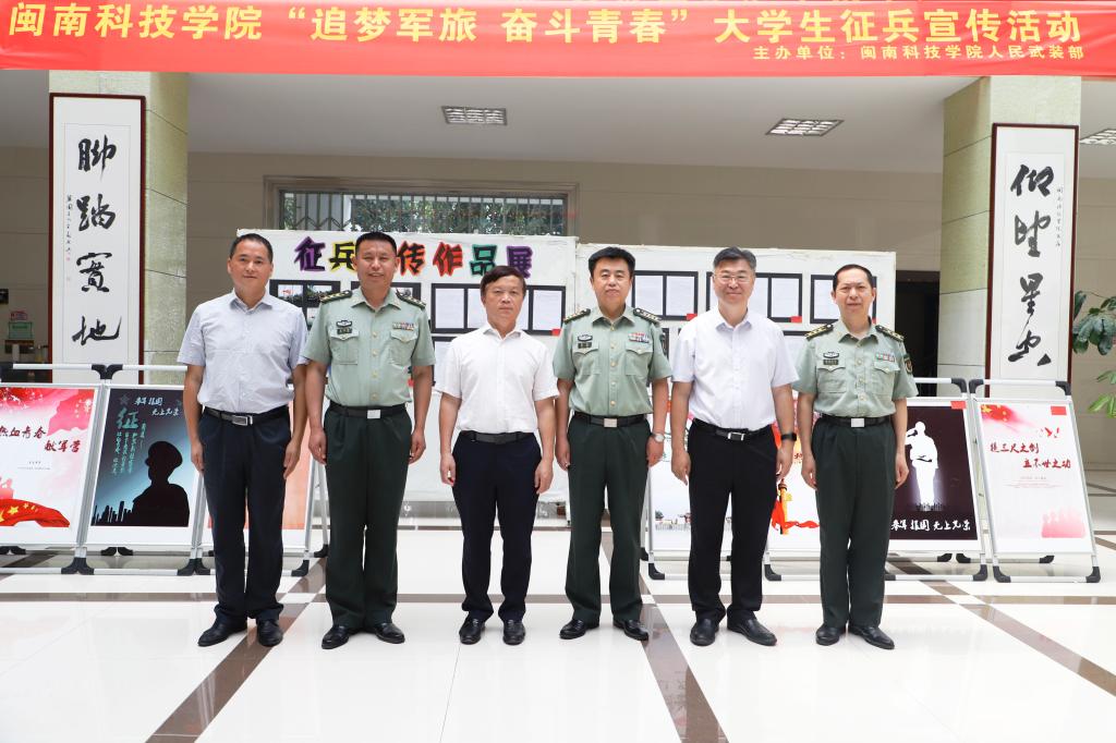 现场还举办“追梦军旅、奋斗青春”征兵宣传作品展,展出学院自4月份以来征集的视频、海报、照片、文学作品等50份作品,结合追梦者动车票海报、军旅主题海报宣传,进一步激发广大青年参军入伍热情,彰显闽科学子追梦军旅、崇军尚武的报国情怀,积极营造依法服役、踊跃参军的浓厚氛围。