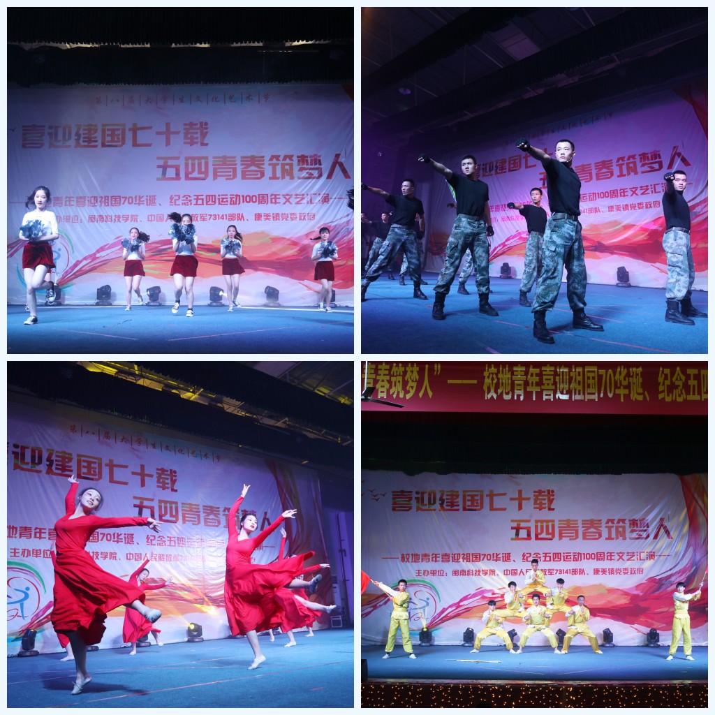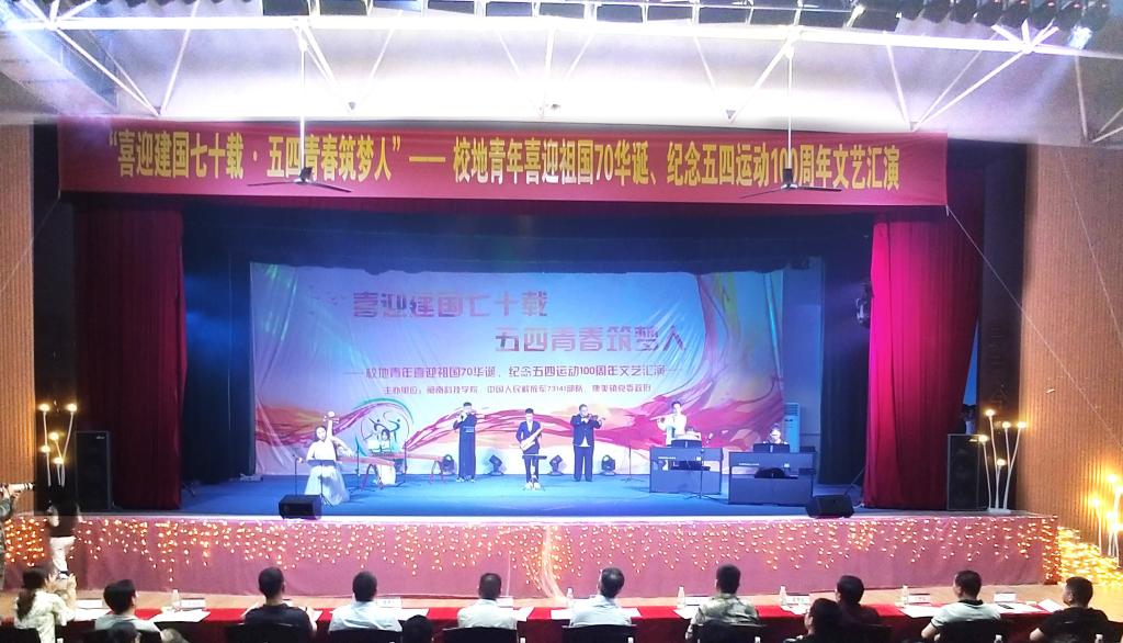 为纪念五四运动100周年,激发广大青年的爱国主义情怀,引导KY.COM青年不忘初心跟党走,青春出彩新时代,4月28日晚,我院联合中国人民解放军73141部队、南安市康美镇党委政府共同举办“喜迎祖国70华诞,纪念‘五四’运动100周年”文艺汇演,中国人民解放军73141部队邵前程科长,康美镇党委书记卓庆哲、康美镇党委宣传委员吴鸿海,学院党委副书记、副院长(主持工作)张杰,学院副院长周勇军、戴景星、吴勇,学院院长助理、学工部部长林树生,来自校地青年1500余人观看演出。