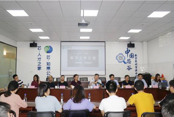 座谈会上,“芯谷90天实践队”成员以ppt的形式展示两个多月以来的工作情况和实习成果,与校领导交流实习体会、分享实践心得。