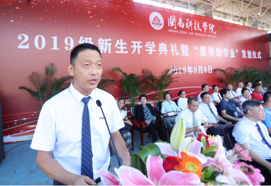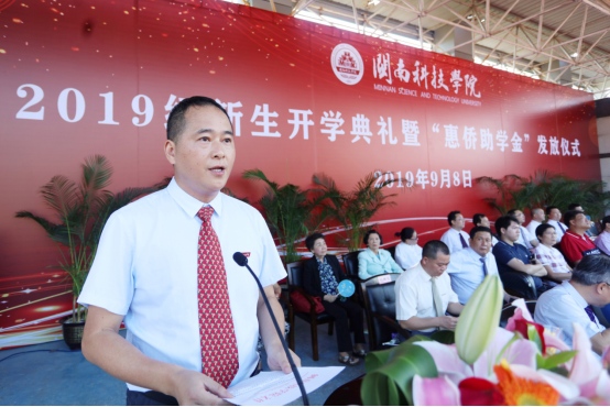 9月8日上午,我校2019级新生开学典礼暨“惠侨助学金”发放仪式在雄壮的国歌声中拉开了序幕。福建省侨联副主席张瑶,省侨联联谊联络部科长林武;南安市委常委、政法委书记张瑞平,市教育局局长黄清地;学校董事长戴宏达,名誉董事长林国端、苏世选,副董事长陈光曦,校领导张杰、周勇军、戴景星、吴勇、林树生,董事会全体成员、各二级学院、各职能部门负责人及2019级全体新生出席大会。大会由学校校长助理、学工部部长林树生主持。