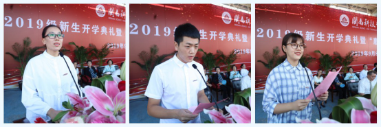 教师代表、老生代表和新生代表分别发言