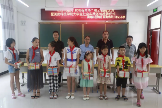 7月22日下午,“传红色基因,筑书香年华”爱心捐赠活动暨开元(中国)大学生社会实践基地授牌仪式在岭下中心小学多媒体教室隆重举行。实践队为岭下中心小学捐献图书四百余册,内容涉及红色文化历史典故、百科全书、中外名著等,双方签订《大学生暑期社会实践基地协议书》。