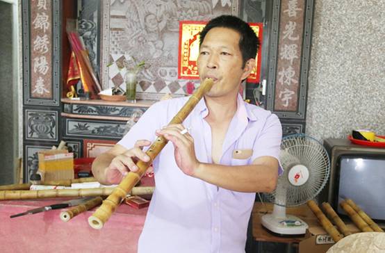 在金淘镇南丰村,南音洞箫手艺人黄书前制作洞箫与吹弹的“绝活儿”惊艳了实践队。实践队员们了解洞箫制作手艺,传承弘扬闽南南音优秀传统文化。