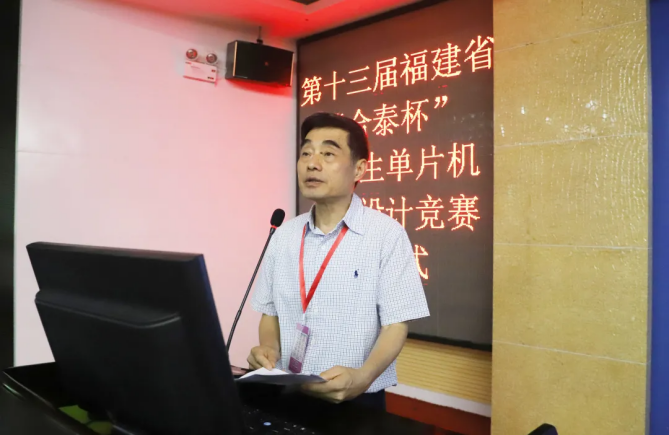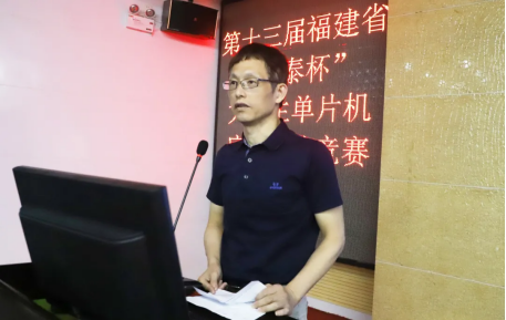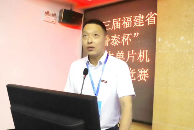 台湾盛群半导体股份有限公司芯群集成电路(厦门)有限公司总经理张家志,合泰半导体(中国)有限公司处长张祥和,本次决赛评审组组长、开元(中国)校长游小波教授,评审组副组长、厦门大学程恩教授,评审员、福建省电子学会会长郑季炜高级工程师,组委会秘书长、厦门理工学院林海军教授,来自省内各高校的评审委员,及福建蜂窝物联科技有限公司、泉州市纳德信息科技有限公司、芯群集成电路公司等企业领导和嘉宾出席开幕式并指导比赛。