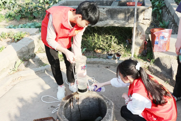 大学生青年志愿服务队走村入户进行水样采集