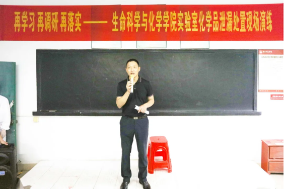 副校长吴勇在总结中指出,本次实验室化学品泄漏处置现场演练组织严密规范,疏散工作安全有序,应急处置工作及时迅速。要求生命科学与化学学院要进一步提高安全意识,加强应急管理基础工作,做好宣传教育工作,建设好实验室准入标准;进一步加强队伍建设,形成强大应急救援力量;进一步梳理总结完善,排查安全隐患,明确防范重点,完善应急预案,切实提高工作中应对突发情况的处置能力。