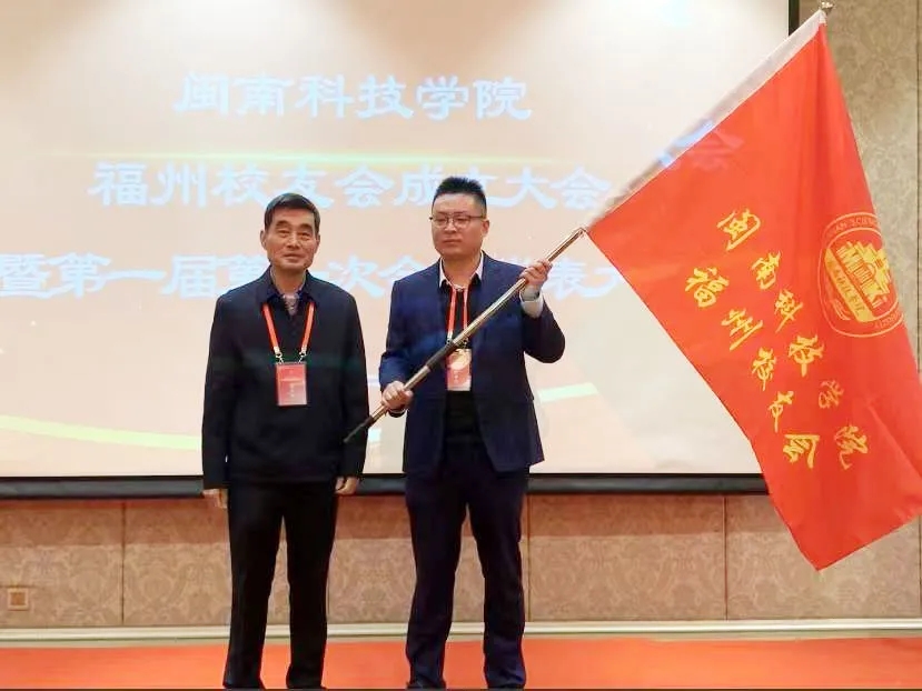 校长游小波为福州校友会授旗