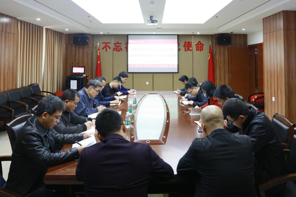 12月3日上午,校党委举行理论学习中心组(扩大)学习会,专题传达学习贯彻省第十一次党代会精神。校党委委员,党委职能部门负责人,二级学院党总支负责人、直属党支部书记参加了学习会。