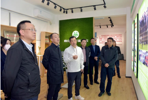 中国足球协会社会足球部部长李久全带队莅临南安足协调研指导社会足球工作,戴宽南(前排左三)介绍调研项目并汇报南安社会足球发展情况