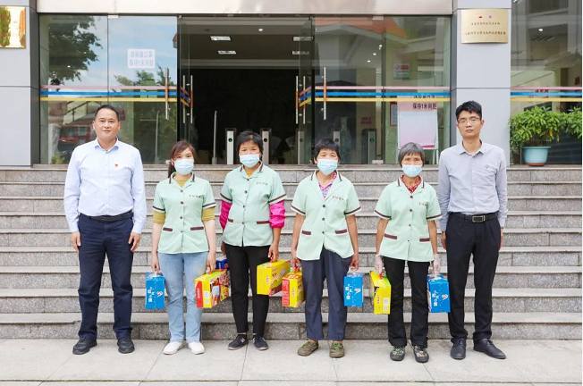 为在全校弘扬新时代劳模精神、劳动精神和工匠精神,进一步营造尊重、关心、学习、争当劳模和工匠的浓厚氛围,在“五一”国际劳动节期间,学校对部分教学、行政、后勤、保卫、医务一线教职工进行慰问,并通过他们向全校教职工致以诚挚的节日问候和美好祝愿。