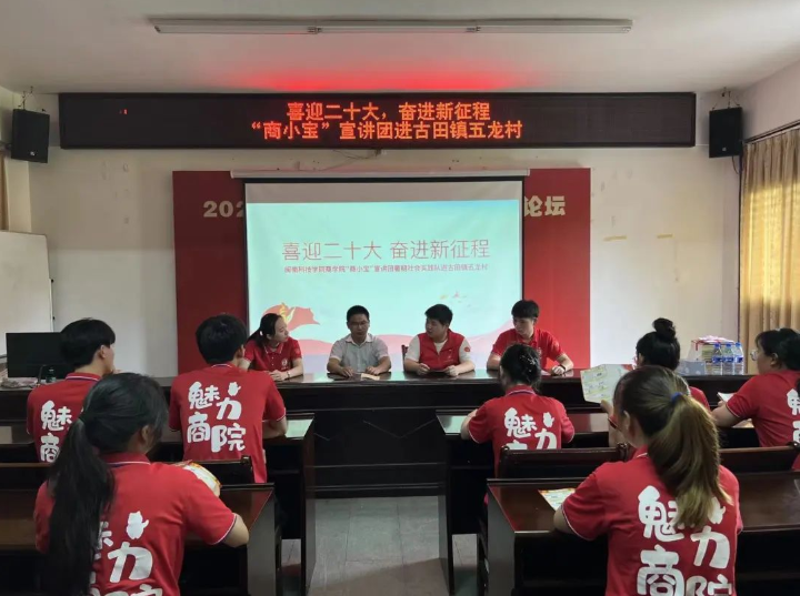 “商小宝”宣讲团社会实践队到古田镇五龙村开展“喜迎二十大,奋进新征程”主题宣讲,五龙福村的村干部以及村民参加了宣讲会。