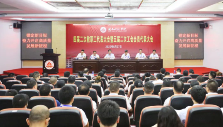 6月27日,我校召开四届二次教职工代表大会暨五届二次工会会员代表大会(简称“双代会”)。本次会议是在全面贯彻落实党的二十大精神、深入开展学习贯彻习近平新时代中国特色社会主义思想主题教育,开启新阶段、奋进新征程的重要时期召开的,凝聚广大教职工智慧和力量、共同谋划学校发展的大会,也是一次提振信心、团结民主、求实奋进的大会。校领导游小波、李旭、周勇军、林树生、邱永渠,校长助理王育海,正式代表、列席代表、特邀代表共120多名出席大会。