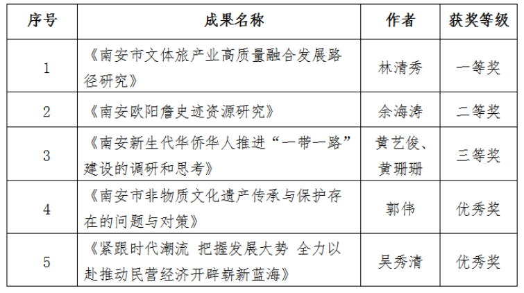 此次活动是以“三十而立再出发——南安撤县建市30周年回顾与展望”为主题的征文活动,活动共征集论文80余篇,经组织评审,共评选出一等奖5篇,二等奖10篇,三等奖13篇、优秀奖12篇予以表彰。